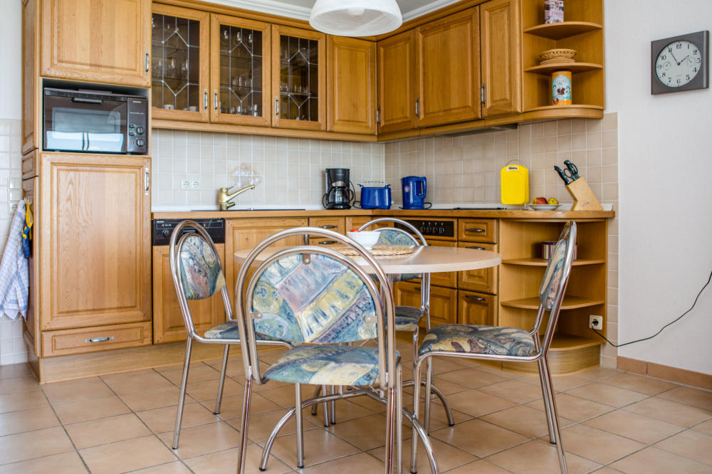 Hier befindet sich auch die eingebaute Küche, in der es Ihnen an nichts fehlen wird. Geschirrspüler, Elektroherd und